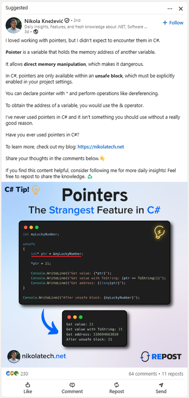 Honestly, I forgot C# even had pointers 😅